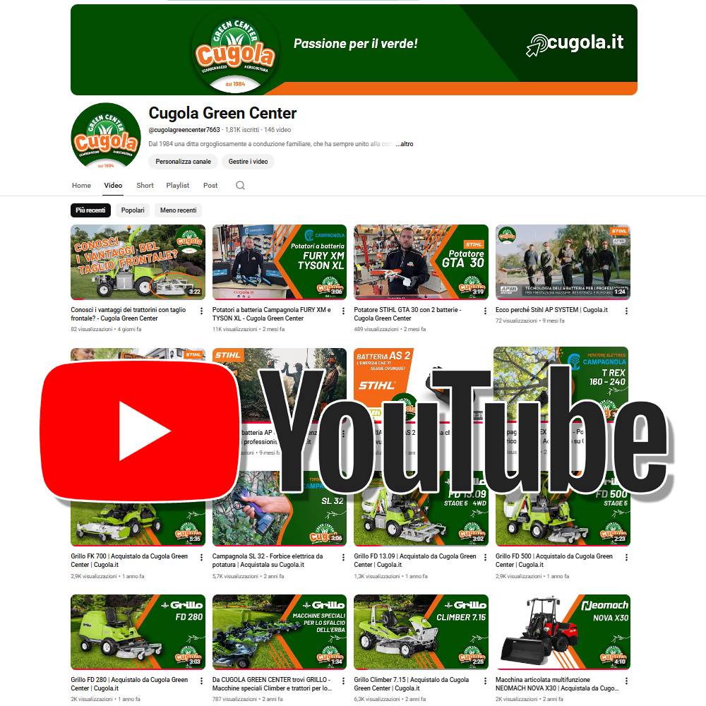 blog / NEWS Nuovi video sul nostro canale Youtube 06 Febbraio 2026 Stiamo preparando nuovi video dedicati al mondo del giardinaggio e dell’agricoltura: attrezzature, macchinari, consigli utili e molto altro! Iscriviti al nostro canale per non perderti neanche un aggiornamento! https://www.youtube.com/@cugolagreencenter7663